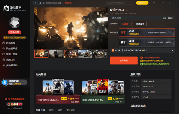 《使命召唤16:现代战争》(Call of Duty: Modern Warfare)是一款由Infinity Ward开发,动视发行的第一人称射击游戏,也是使命召唤“现代战争”系列的重启之作。本作于2019年10月25日正式发售,登陆PS4、Xbox One及PC平台,其中PC版本由战网独占 。从9月12日起,《使命召唤16:现代战争》进行了玩家测试,直至9月23日为止,创造了三项历史最高纪录。在进行测试期间,创造了系列历史以来测试版PS4,Xbox One,PC平台参与玩家数、总游玩时间和同时在线人数的三项最高纪录。《使命召唤:现代战争》大逃杀模式 “战区”正式公布,该模式将向所有玩家免费开放,并且支持跨平台游玩,同时没有《使命召唤:现代战争》游戏本体的玩家也可游玩。